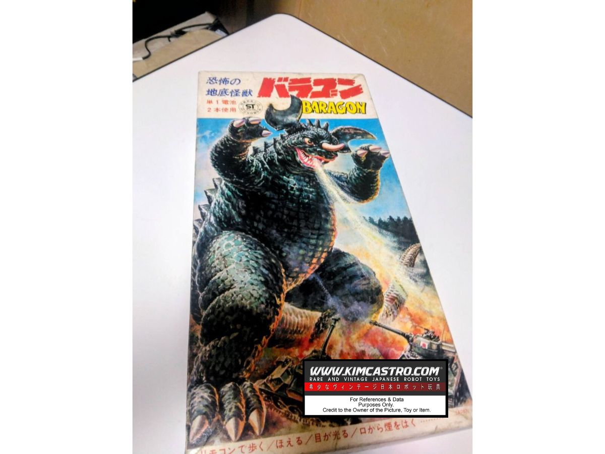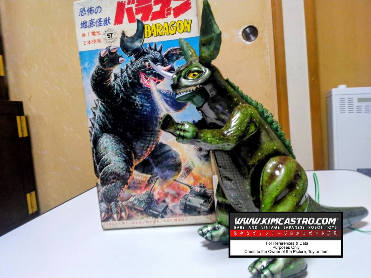 BARAGON REMOTE CONTROL TIN TOY WIND UP WALKING ROBOT WIND-UP MARUSAN BULLMARK. バラゴン リモコン式ブリキ製ゼンマイ式歩行ロボット マルサン ブルマーク