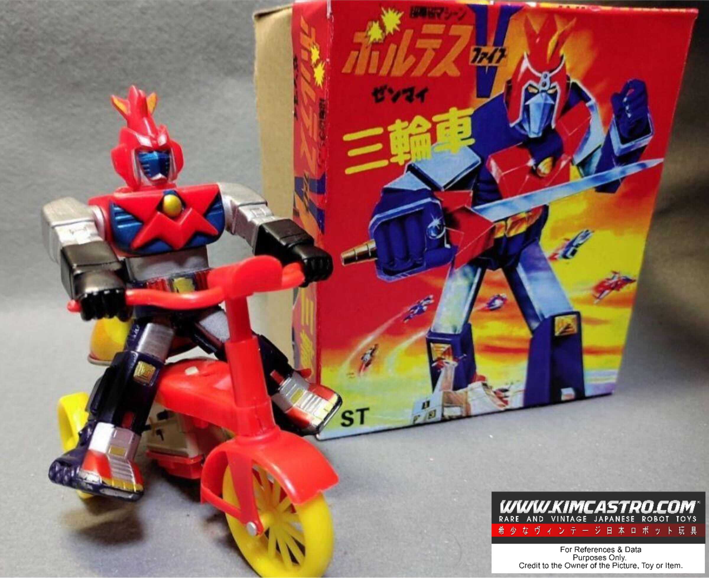SUPER ELECTROMAGNETIC SHOWA RETRO CHŌDENJI ROBO VOLTES V, VOLTUS V, VOLTES FIVE, VOLTES 5, BORUTESU V, BOLTES V, VOLTEZ V MEDIUM SIZE SOFUBI SPRING TRICYCLE PACHI. 超電磁 昭和レトロ超電磁ロボ ボルテスV、ボルテスV、ボルテスファイブ、ボルテス5、ボルテスV、ボルテスV、ボルテスV中型ソフビスプリング三輪車パチ。